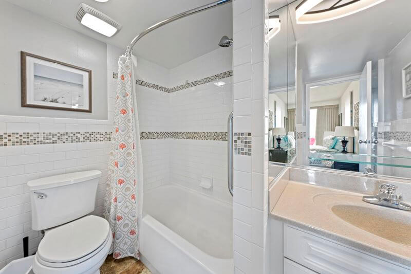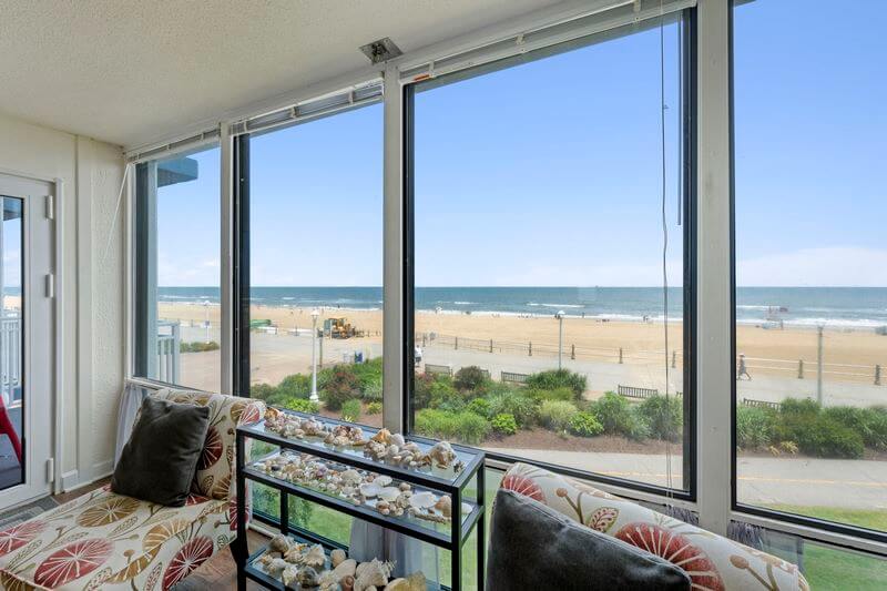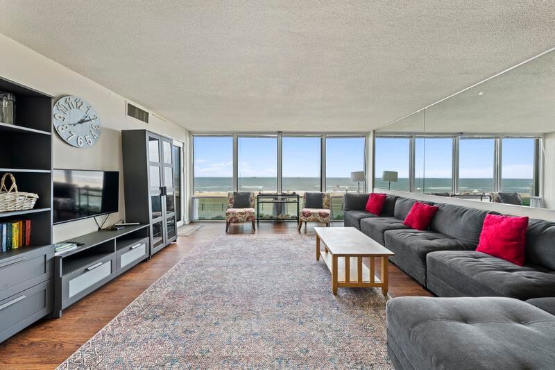 Conveniently located on the second floor with expansive views of the ocean, quick access to beach and boardwalk by stairs or elevator. The newly renovated Edgewater oceanfront condo building is located next to the boardwalk, bike path, and fitness park. 202 is a sparkling clean 2 bedroom, 2 bath oceanfront condo - ideal for your next family beach vacation. Spacious living room is equipped with plenty of seating, with a large smart TV.
